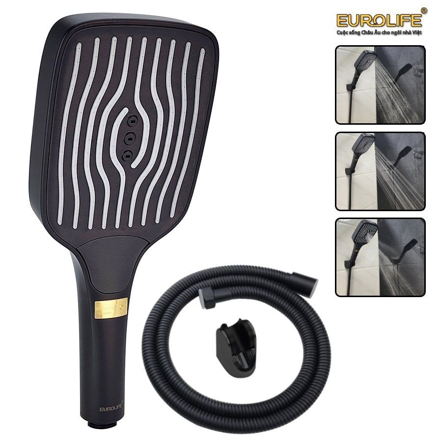 Bộ tay dây sen 3 chức năng chảy, nhựa ABS mạ đen Eurolife EL-125SH-D
