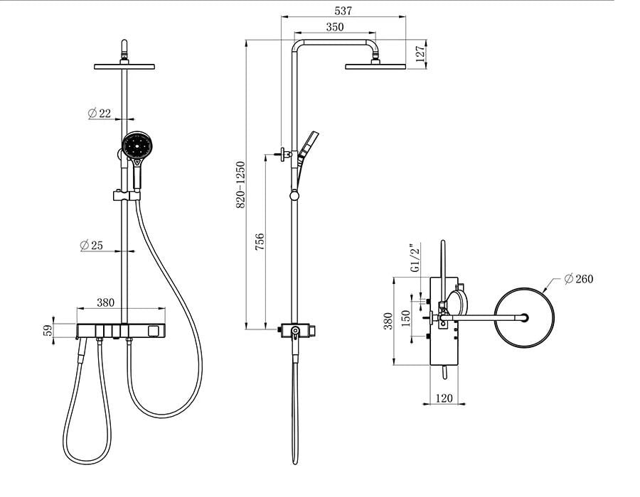 Cây sen nóng lạnh màn hình LED thể hiện nhiệt độ dòng nước và thời gian tắm, 4 chế độ sử dụng, màu đen Eurolife EL-SC905