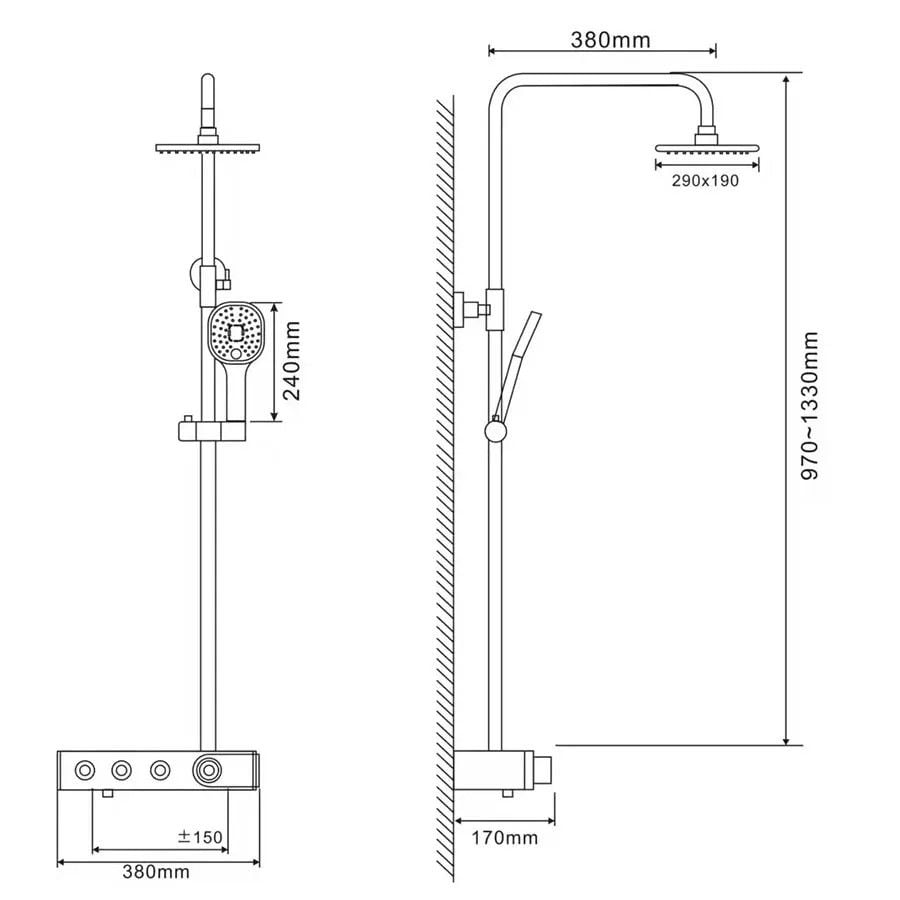 Bát trượt có thể di chuyển vị trí trên ống sen bằng nút bấm trên bát, điểu chỉnh độ cao của tay sen phù hợp với người sử dụng