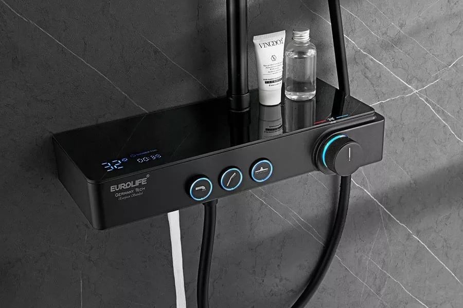 Cây sen nóng lạnh màn hình LED thể hiện nhiệt độ dòng nước và thời gian tắm Eurolife EL-SC918 ( Màu đen)