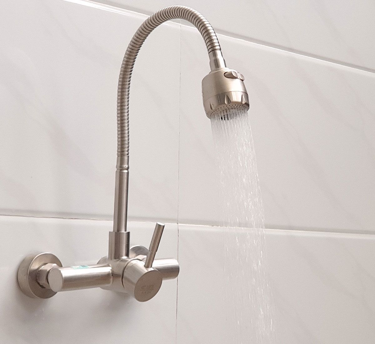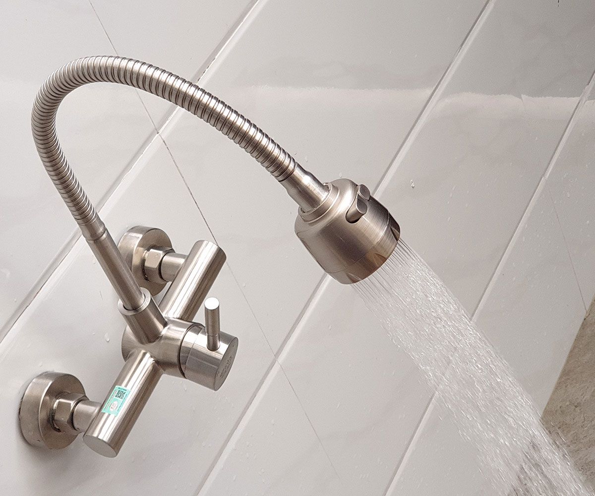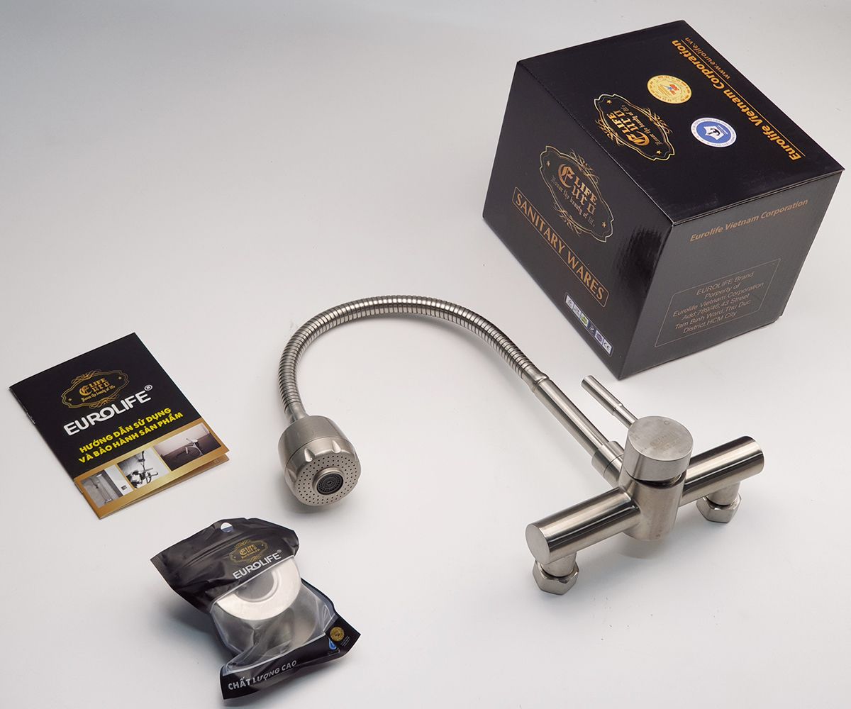 Vòi rửa chén âm tường cần lò xo Inox SUS 304 Eurolife EL-T017AT (Trắng vàng)