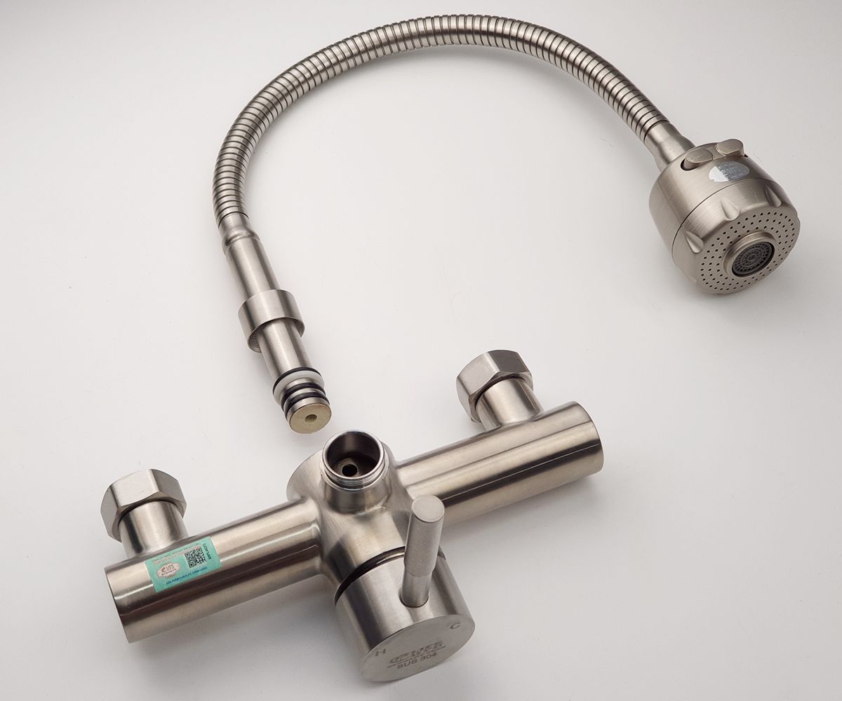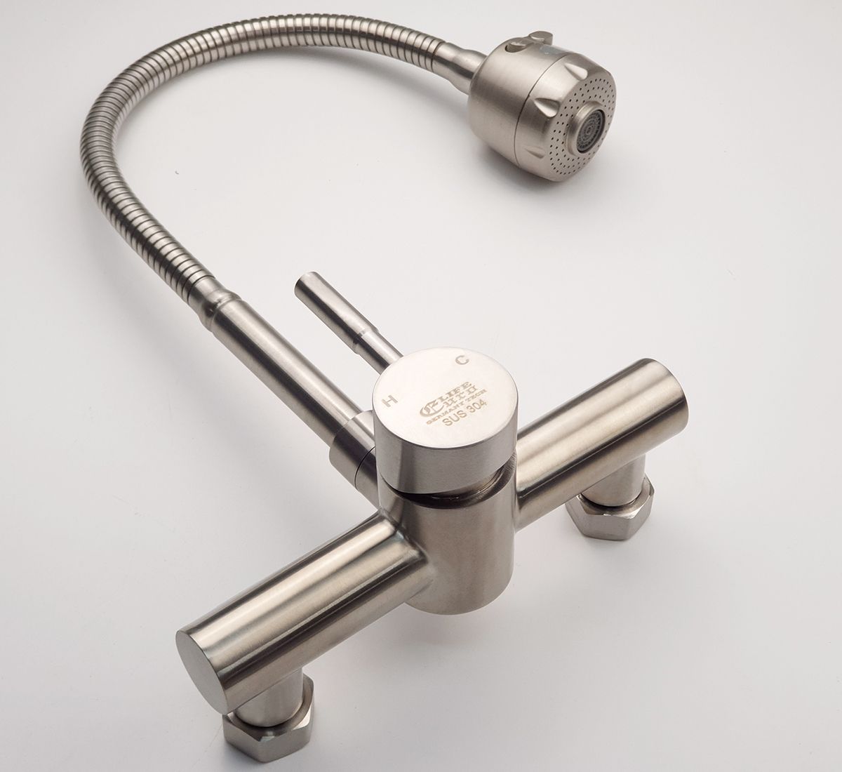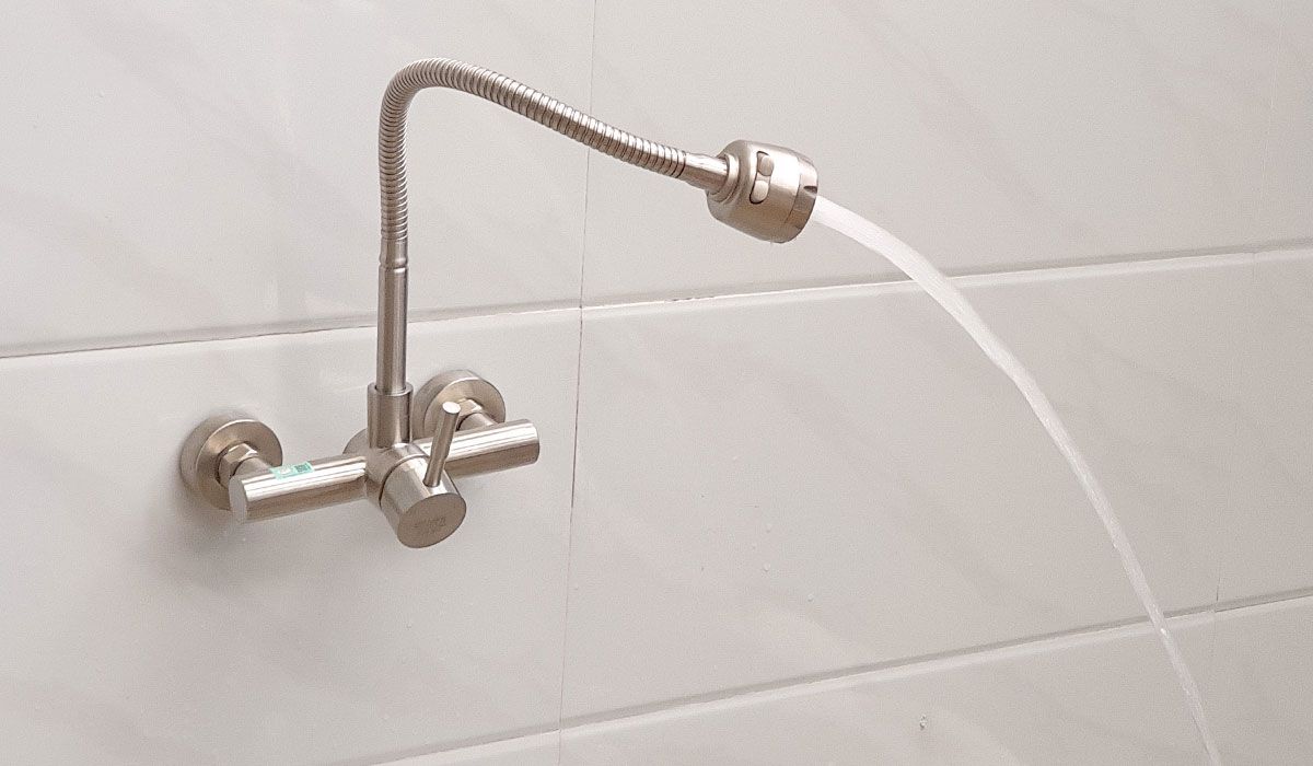Vòi rửa chén âm tường cần lò xo Inox SUS 304 Eurolife EL-T017AT (Trắng vàng)