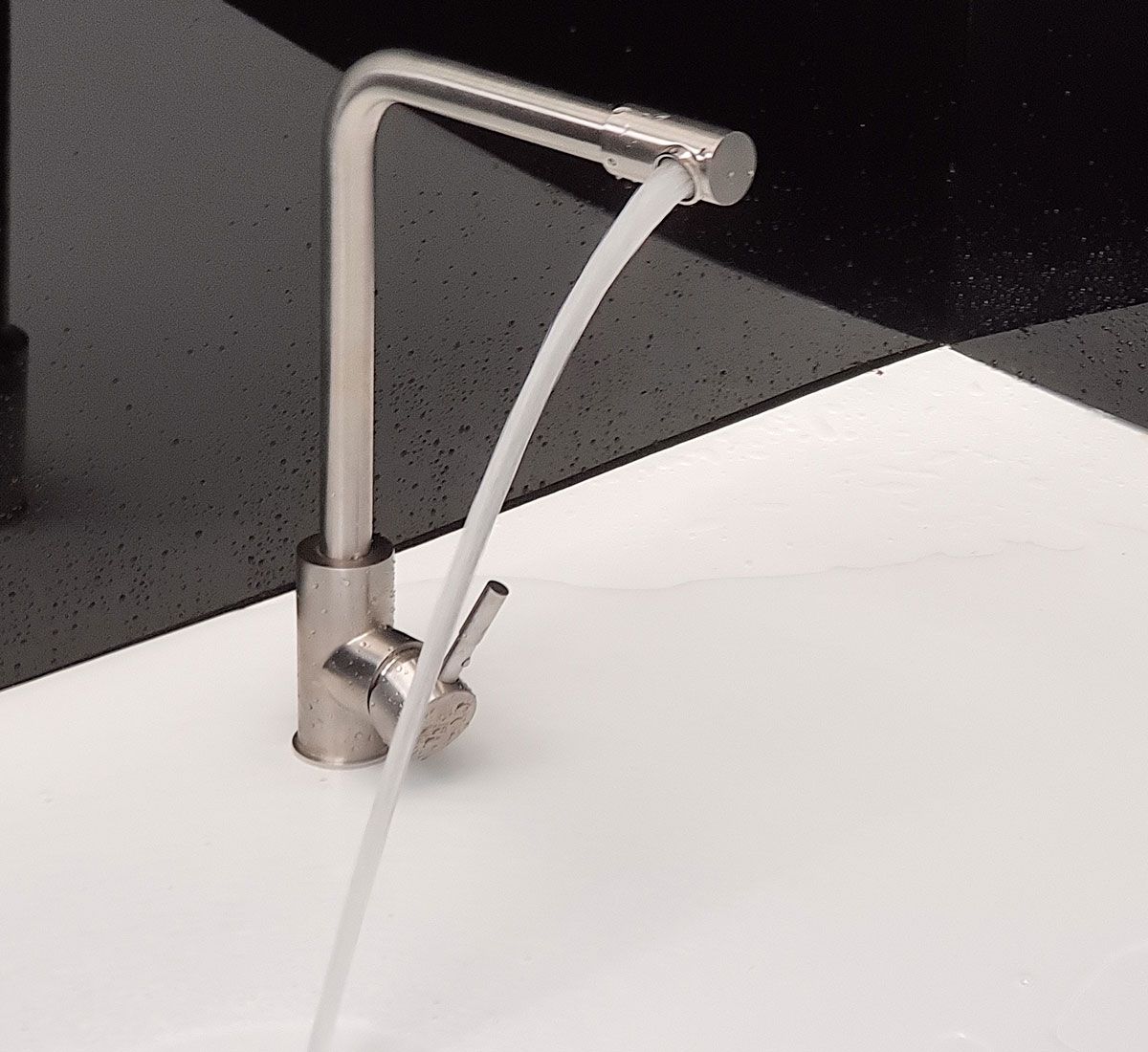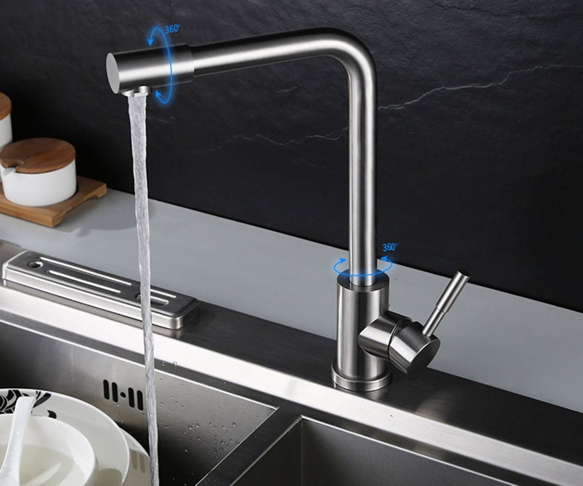 Vòi rửa chén nóng lạnh Inox SUS 304 nguyên khối đầu vòi xoay 360 độ Eurolife EL-KM10 (Trắng vàng)